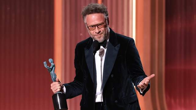 塞斯·罗根 (Seth Rogen) 在 2026 年演员奖颁奖典礼上登台。