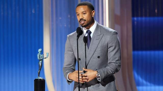 迈克尔·B·乔丹 (Michael B. Jordan) 在 2026 年演员奖颁奖典礼上。