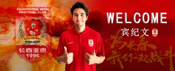 2月10日,长春亚泰官宣宾纪文正式加盟。即日起,宾纪文将代表长春亚泰队征战2026赛季中甲联赛及足协杯赛事。资料显示,宾纪文1996年5月出生于法国,中国香港籍运动员,司职后卫,职业生涯曾效力香港杰志队、黑龙江冰城、苏州东吴、香港东方、深圳青年人等球队。
