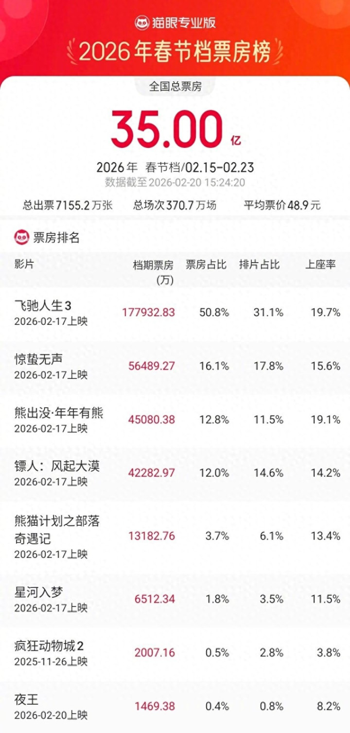 业内直言:最终票房保底40亿+,春节档冠军提前锁死,其他影片连追的资格都没有!